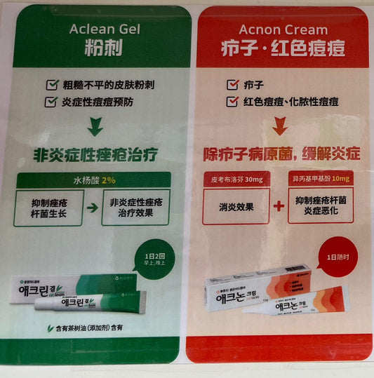 Korea Online Pharmacy Dongya Pharmaceutical Acnon Anti-inflammatory and Sterilizing Acne Cream and 2% Salicylic Acid Blackhead Remover Wine Rice Gel Aclean Gel