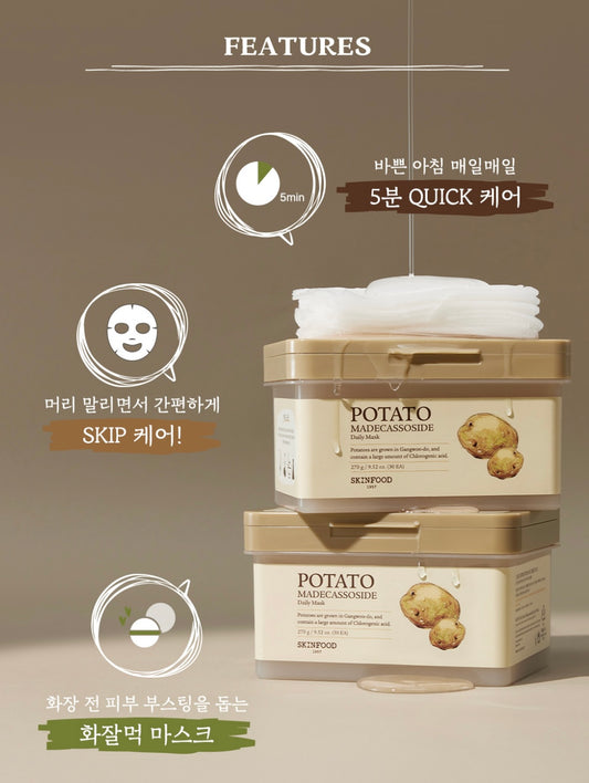 Direct from Korea 💕 Skinfood Potato Madecassoside Daily Mask Potato Centella Asiatica Moisturizing, Soothing and Brightening Daily Morning Mask 30 Sheets