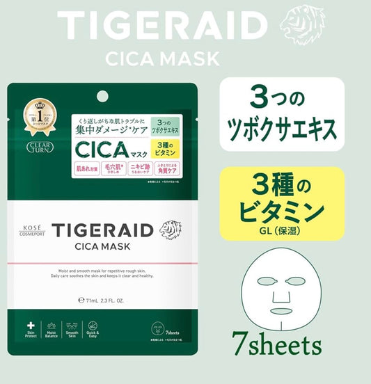 🇯🇵Kose Tigeraid Cica Centella Asiatica Intensive Repair Moisturizing Mask 7 pieces shipped directly from Japan