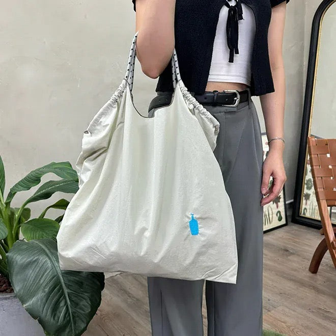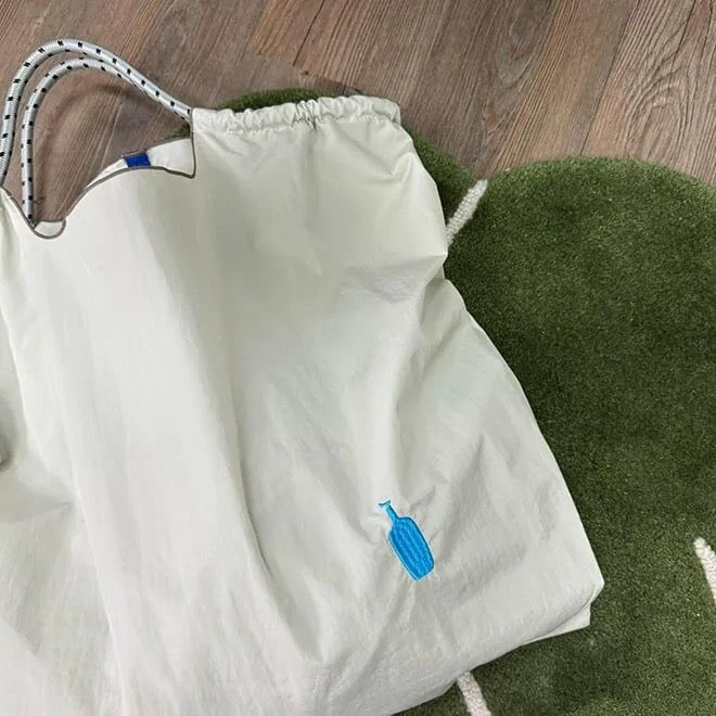 This tote bag is no exception😍 Made of grey waterproof nylon with the signature Blue Bottle embroidery💙, it's simple, practical, and elegant, perfect for carrying around on the street🫶🏼