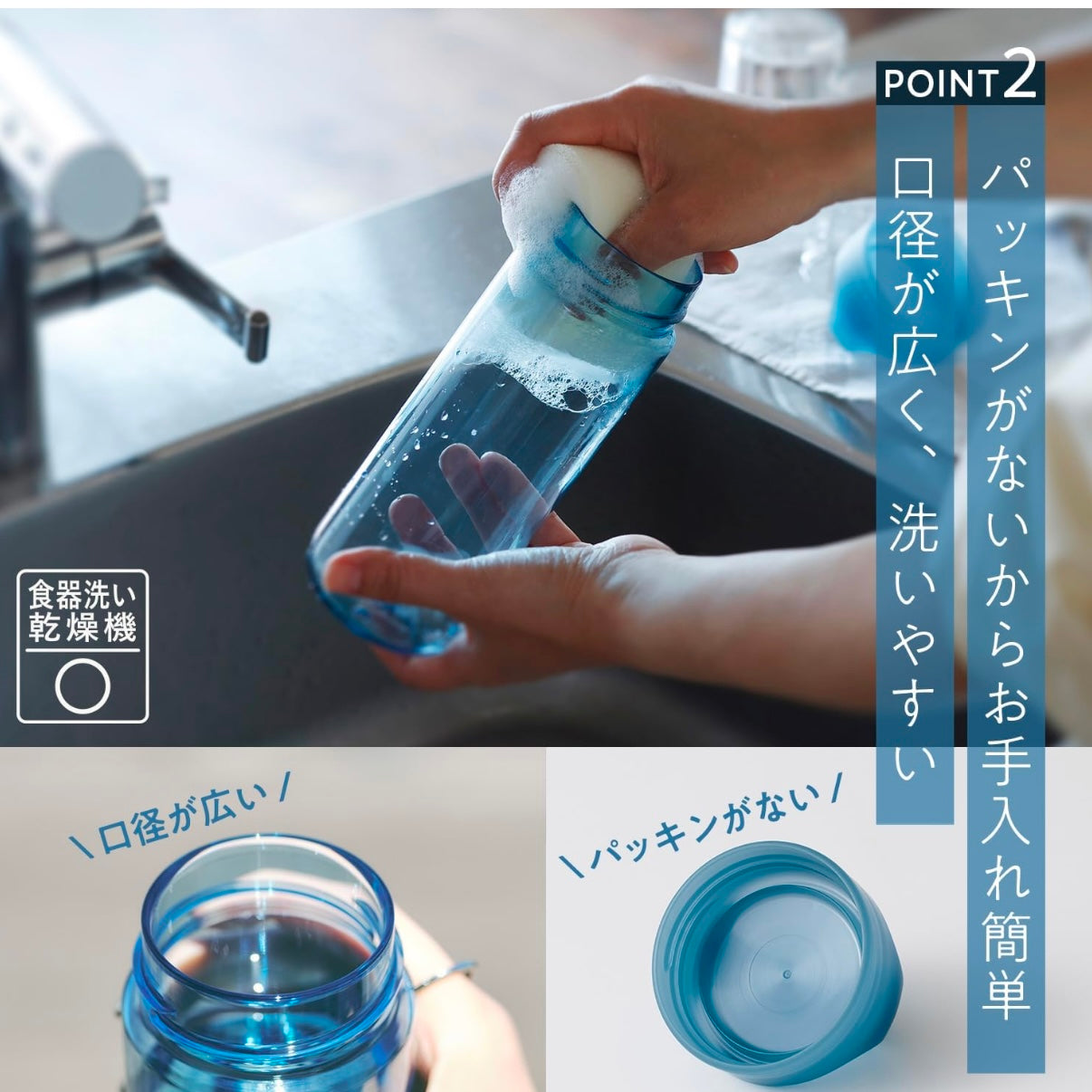 The entire water bottle does not have a gasket like a plastic bottle. The simple structure consists of only 2 parts. The wide mouth makes it easy to clean. It can be put into the dishwasher and dryer‼ ️