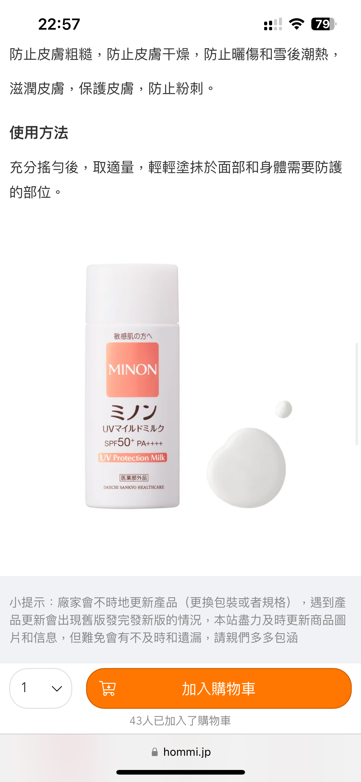 Japan MINON UV mild sunscreen lotion 80ml SPF50+PA++++. Can protect the skin’s barrier function and prevent sunburn☀️