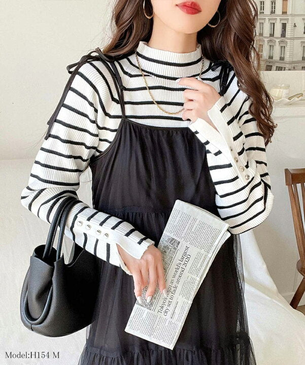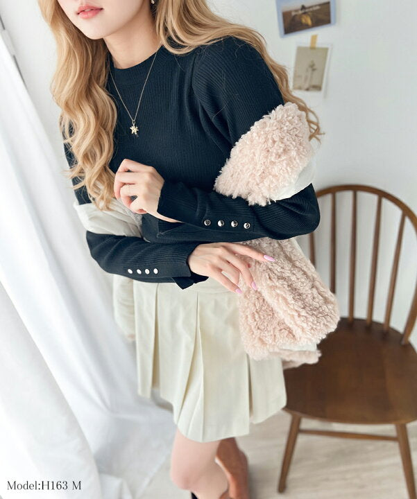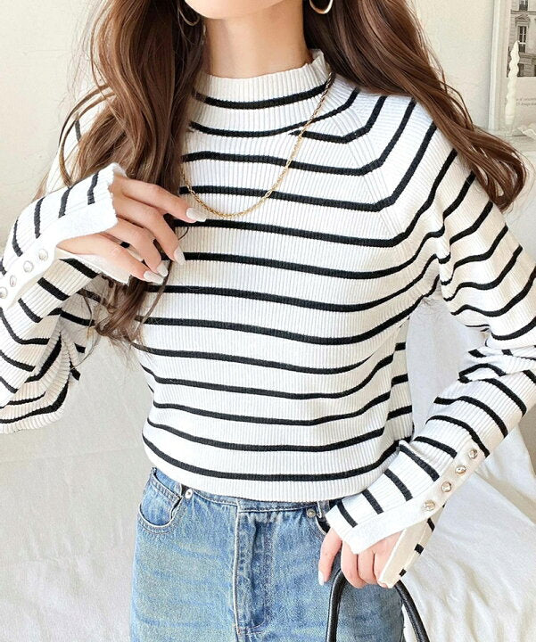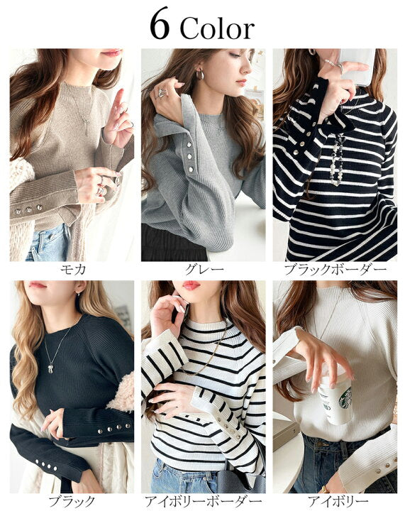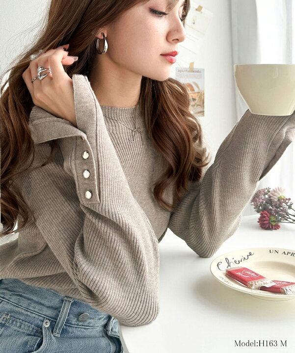 🇯🇵 日本直送 Classical Elf 袖鈕釦 高領坑紋 針織上衣 ce1020148