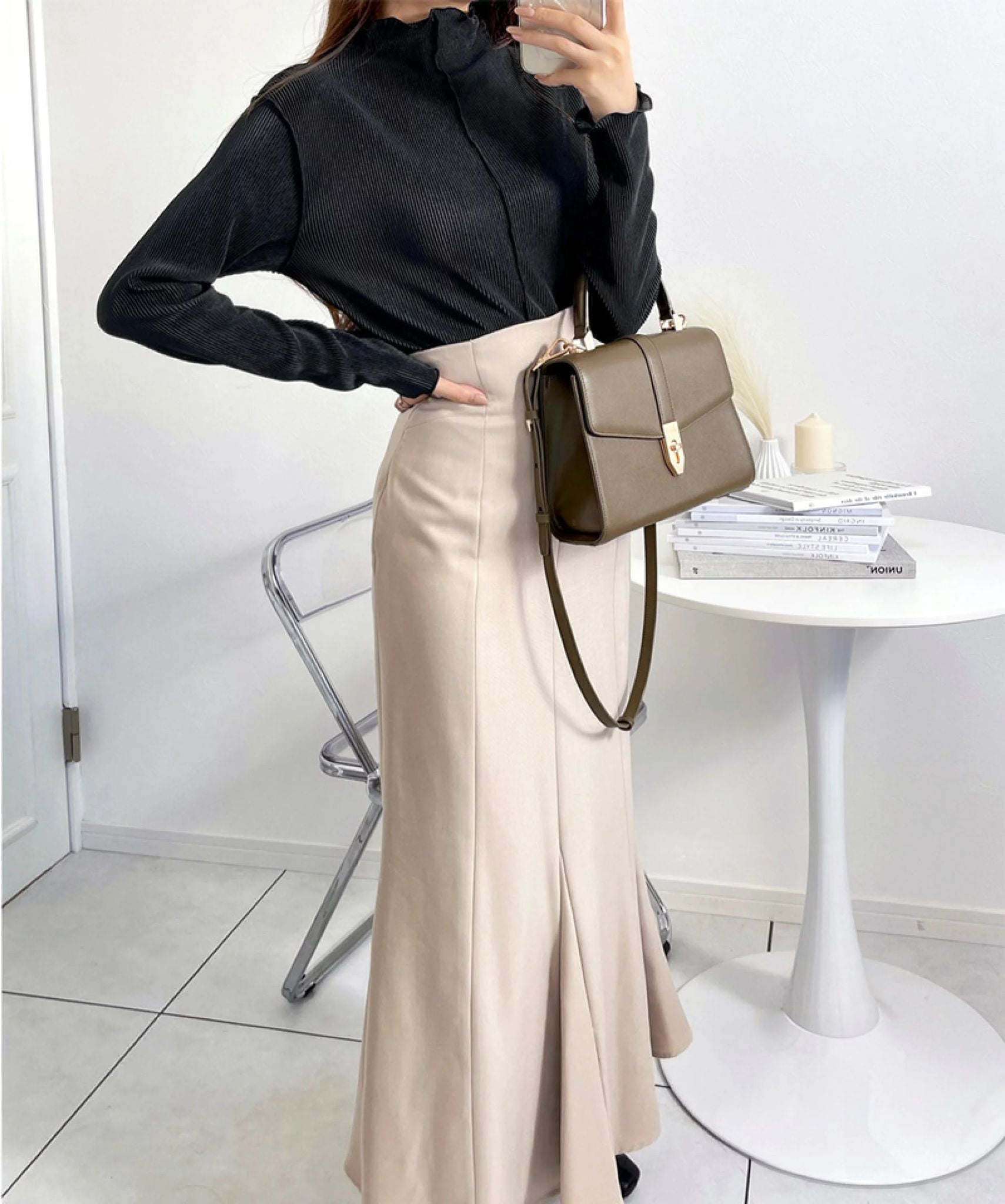 ✨ 一件就有氣質!高領×細密縱向プリーツ設計,配上領口&袖口的mellow荷葉邊,簡單襯都好有女人味;縱紋視覺拉長比例,顯瘦又修飾手臂。日常單穿/外搭都靚到不得了~