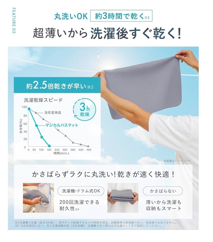 日本家喻戶曉嘅「激落君」與知名纖維大廠 UNITIKA 聯名推出!呢款地墊主打**「極速吸水、瞬間乾爽」**,採用特殊三層構造,吸水力強到連 4-5 個人連續洗完澡用都完全冇問題,絕對係浴室必備!🌊
