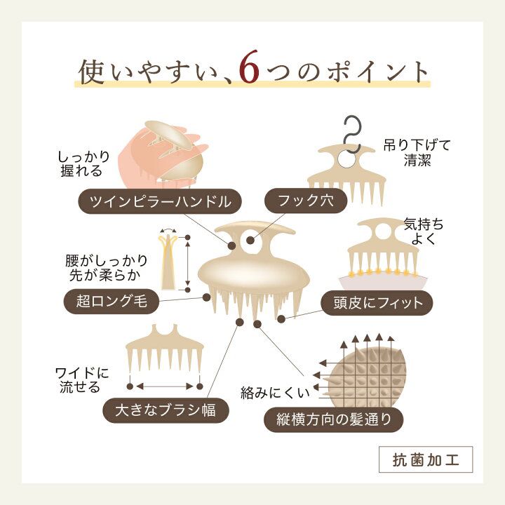輕鬆用於頭皮按摩、洗髮清潔,帶來如同 頭部SPA 的享受。另外💦🛁 吊掛式設計,內附吊掛孔,方便浴室收納,節省空間且易於晾乾。🏠 全程日本製造,品質卓越,讓你使用更安心。🇯🇵