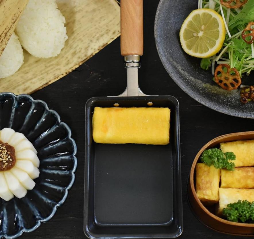 用日本金屬之都 職人造功打造的長方形玉子燒鍋,黑皮鐵板配木柄設計,導熱勻稱、蓄熱力高,輕鬆煎出外層定形、內裡軟嫩嘅厚燒玉子!😋✨