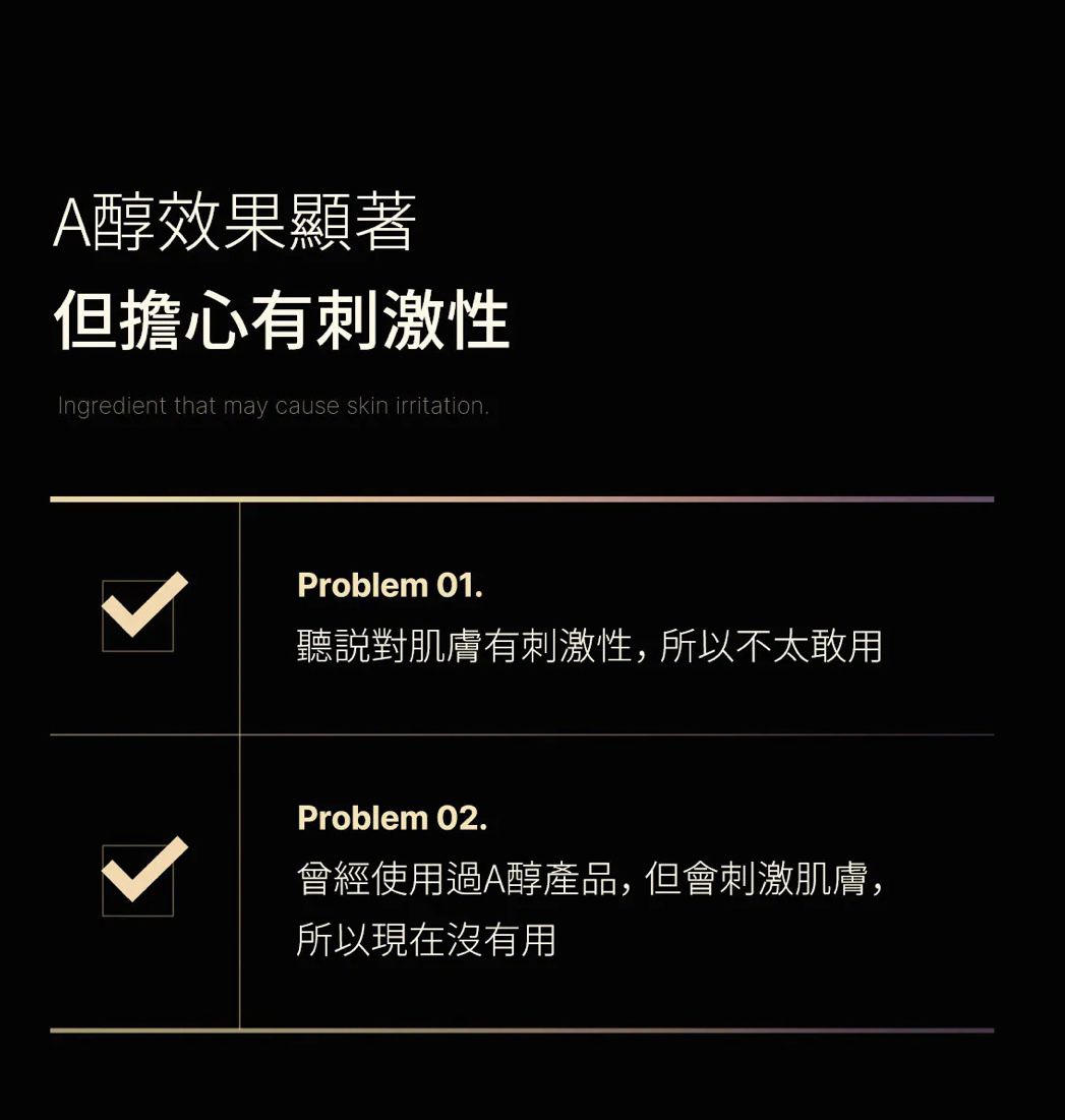 ✅ 3重穩定技術(膠囊包裹+水溶+脂溶穩定),減低A醇刺激同不穩定問題