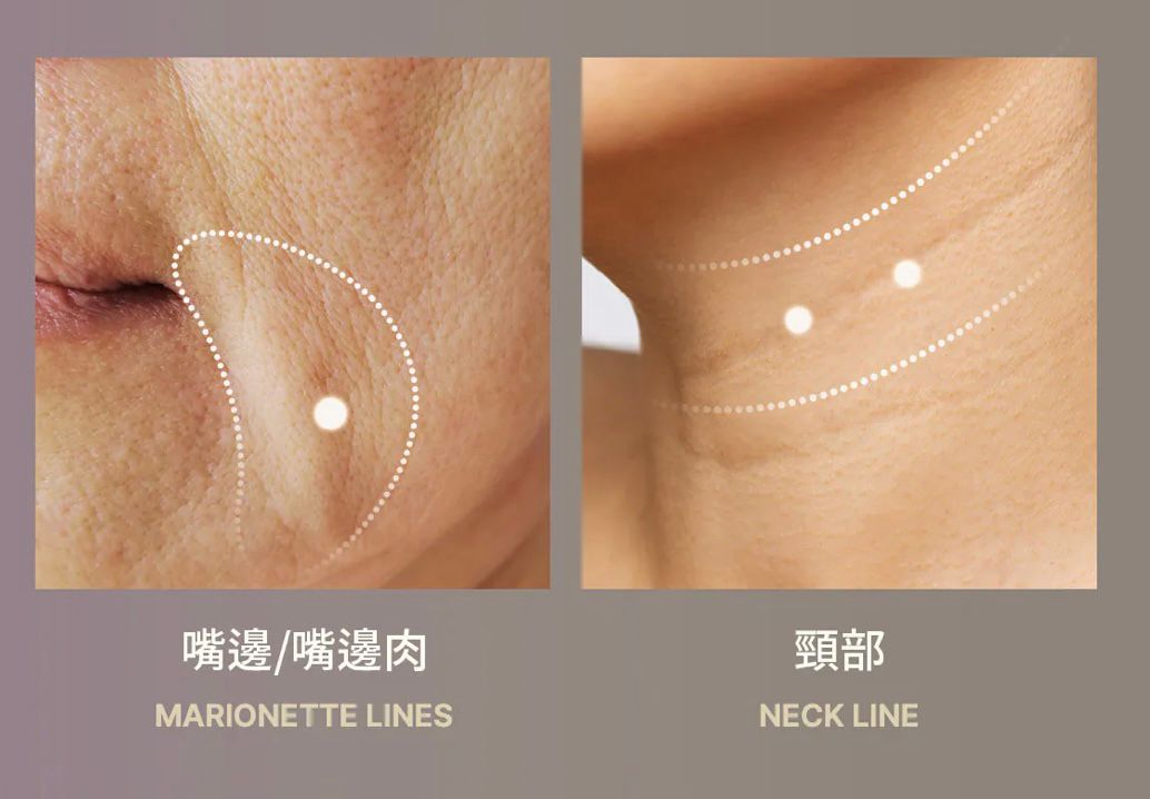 ✅ 改善5大細紋:眼周魚尾紋、眉心紋/鼻樑紋、法令紋、嘴角木偶紋、頸紋