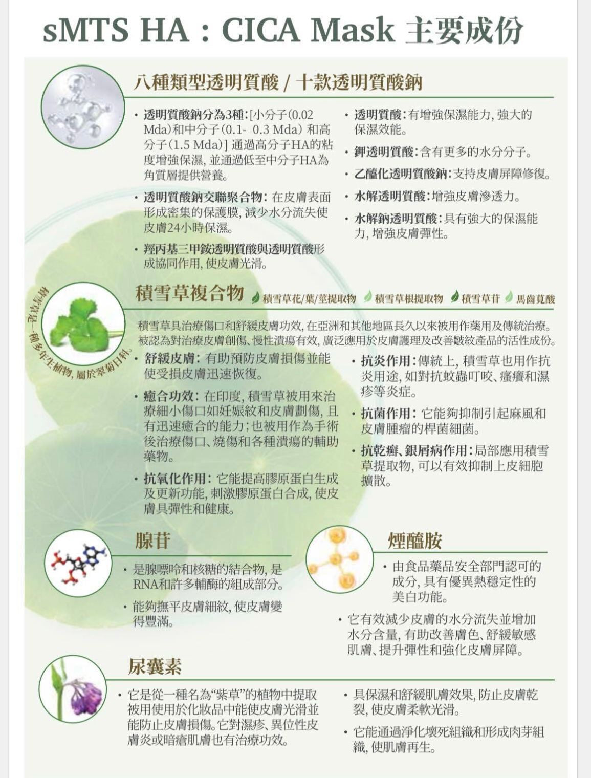 📍含有積雪草提取複合物和尿囊素等成分,輕易舒緩敏感肌
